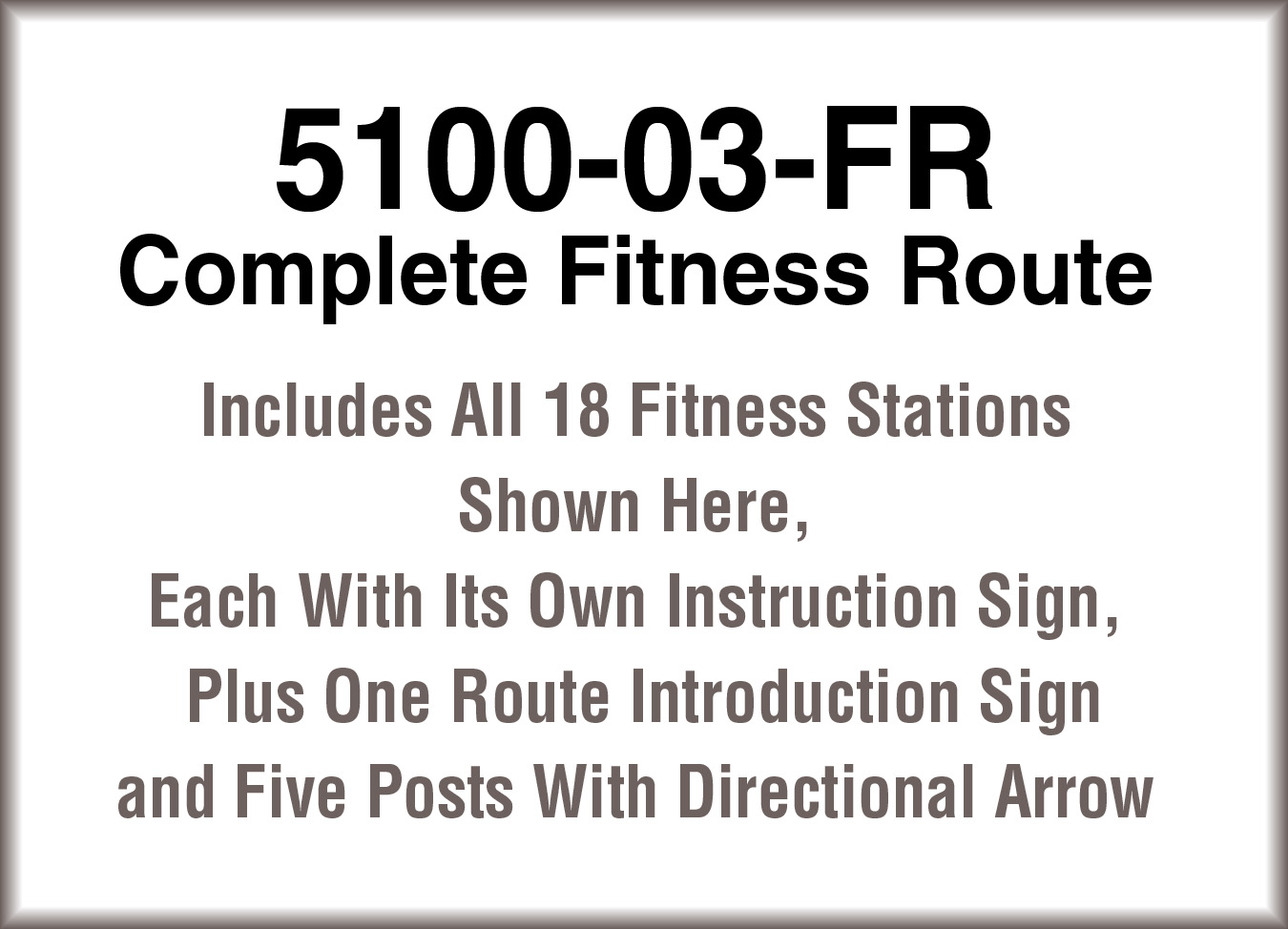 TimberForm 5100-03-FR, Complete Fitness Route Standard Features: Complete series includes the 18 stations shown on this page, the Introduction/Heart Rate sign, plus five posts with directional arrows Options: Indicate arrow direction using analog clock setting Downloads: View: |