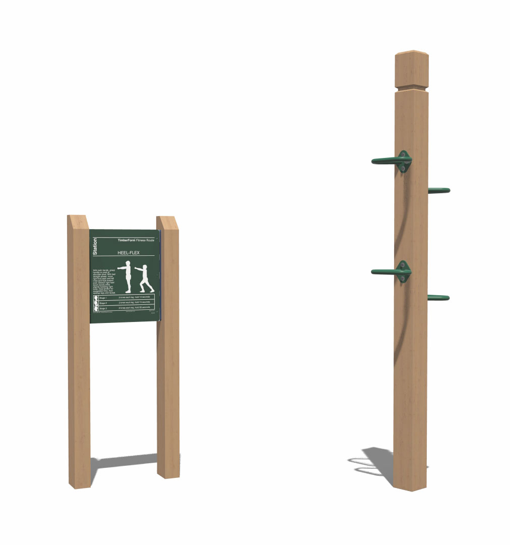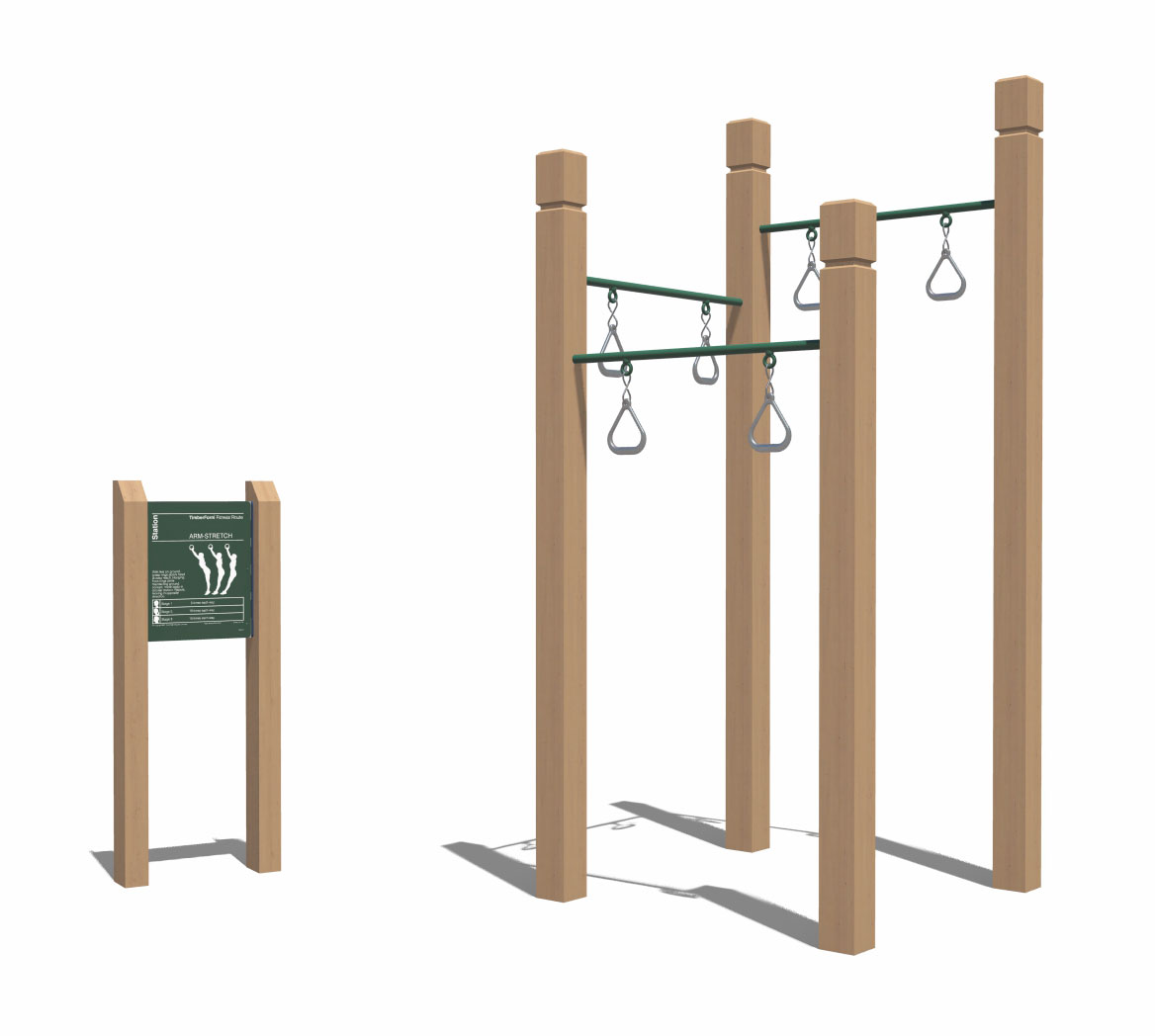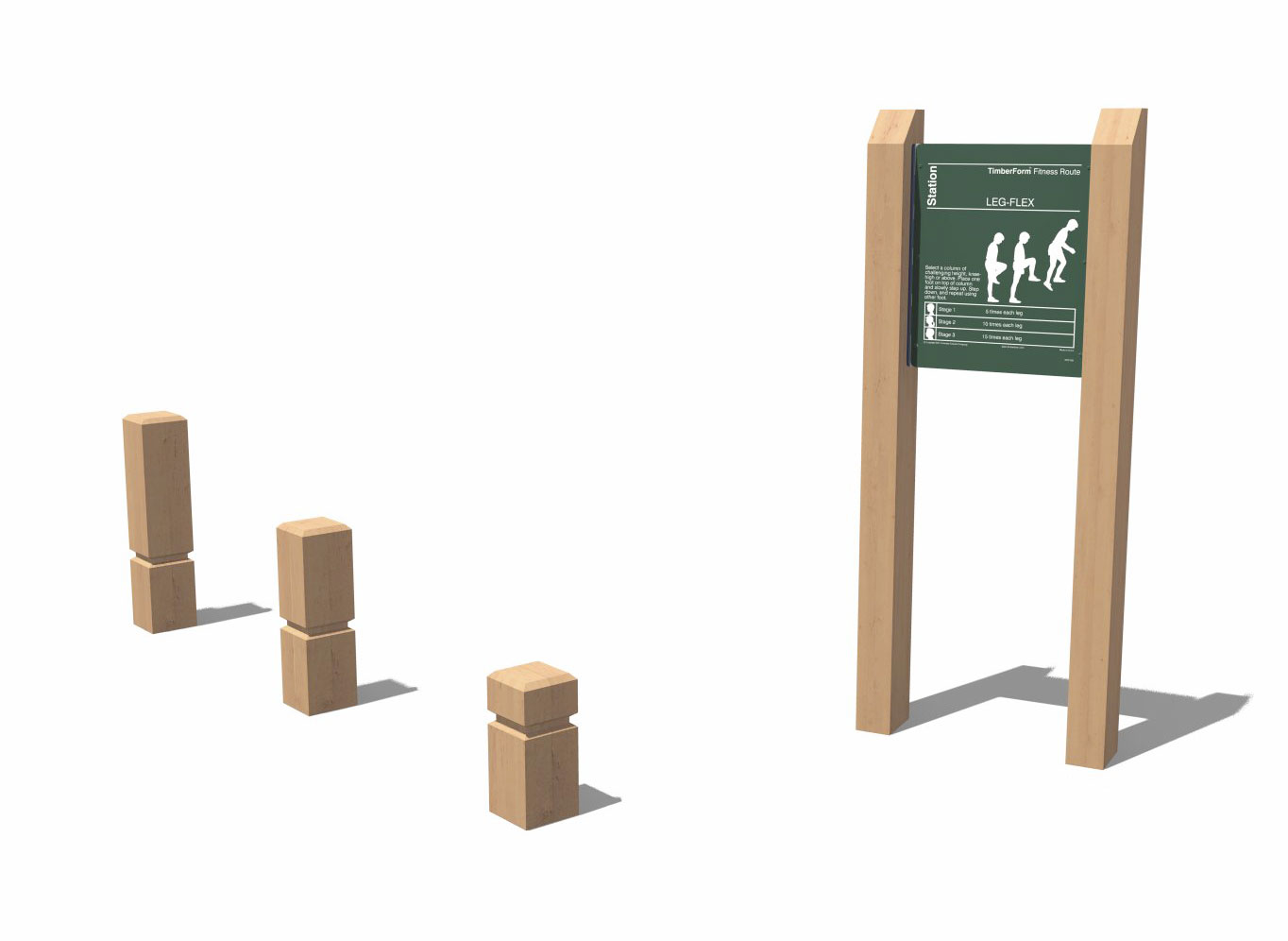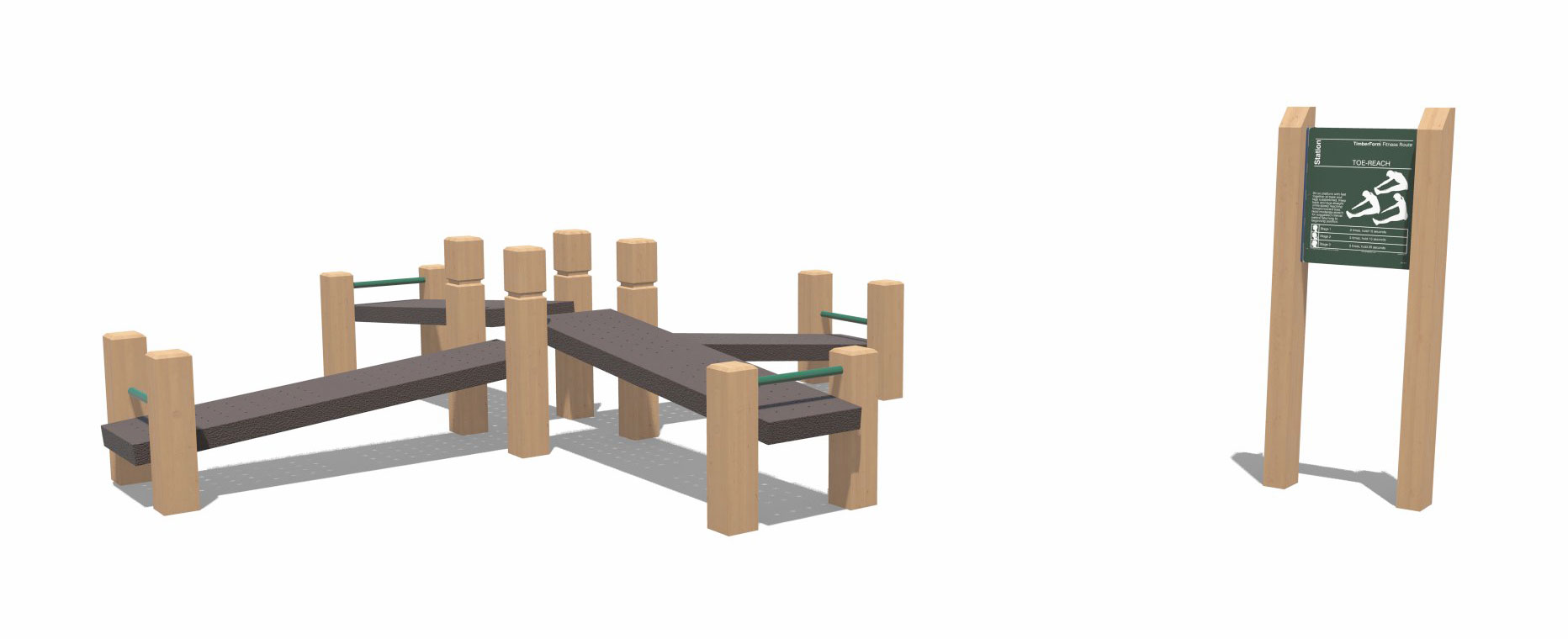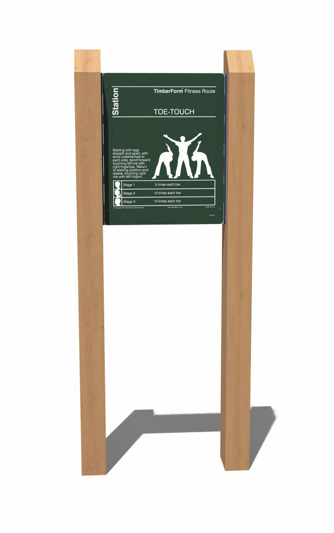TimberForm, 5101-03, Heel-Flex Standard Features: Timber posts and sign frame are smoothly dressed free-of-heart-center Coastal Douglas fir All wood components pressure preservatively treated with a water repellant formulation All posts are Max-Treat incised and kerfed to maximize wood preservative preservation at the critical ground line All rails are powder-coated schedule 40 steel pipe Instructional sign is durable porcelain enamel coated steel Options: Station sequence and sign numbering White graphics on Blue or Green porcelain enamel coated steel panel Choose from ten standard powder-coating colors for metal components Available separately or as part of a set (5100-03-FR) consisting 18 Stations, each with its own instruction sign, one route introduction sign, plus five posts with directional arrows Downloads: View: TimberForm 5102-03, Toe-Reach, with SofDek Bench Tops Standard Features: Bench tops are reinforced perforated steel plate coated with SofDek UV stabilized thermoplastic Timber posts and sign frame are smoothly dressed free-of-heart-center Coastal Douglas fir All wood components pressure preservatively treated with a water repellant formulation All posts are Max-Treat incised and kerfed to maximize wood preservative preservation at the critical ground line All rails are powder-coated schedule 40 steel pipe Instructional sign is durable porcelain enamel coated steel Options: Station sequence and sign numbering White graphics on Blue or Green porcelain enamel coated steel panel Choose from ten standard powder-coating colors for metal components Available separately or as part of a set (5100-03-FR) consisting 18 Stations, each with its own instruction sign, one route introduction sign, plus five posts with directional arrows Downloads: View: TimberForm 5103-03, Toe-Touch Standard Features: Sign and frame only, no apparatus required Timber sign frame is smoothly dressed free-of-heart-center Coastal Douglas fir All wood components pressure preservatively treated with a water repellant formulation All posts are Max-Treat incised and kerfed to maximize wood preservative preservation at the critical ground line Instructional sign is durable porcelain enamel coated steel Options: Station sequence and sign numbering White graphics on Blue or Green porcelain enamel coated steel panel Choose from ten standard powder-coating colors for metal components Available separately or as part of a set (5100-03-FR) consisting 18 Stations, each with its own instruction sign, one route introduction sign, plus five posts with directional arrows Downloads: View: TimberForm 5104-03, Knee-Grip Standard Features: Sign and frame only, no apparatus required Timber sign frame is smoothly dressed free-of-heart-center Coastal Douglas fir All wood components pressure preservatively treated with a water repellant formulation All posts are Max-Treat incised and kerfed to maximize wood preservative preservation at the critical ground line Instructional sign is durable porcelain enamel coated steel Options: Station sequence and sign numbering White graphics on Blue or Green porcelain enamel coated steel panel Choose from ten standard powder-coating colors for metal components Available separately or as part of a set (5100-03-FR) consisting of 18 Stations, each with its own instruction sign, one route introduction sign, plus five posts with directional arrows Downloads: View: |