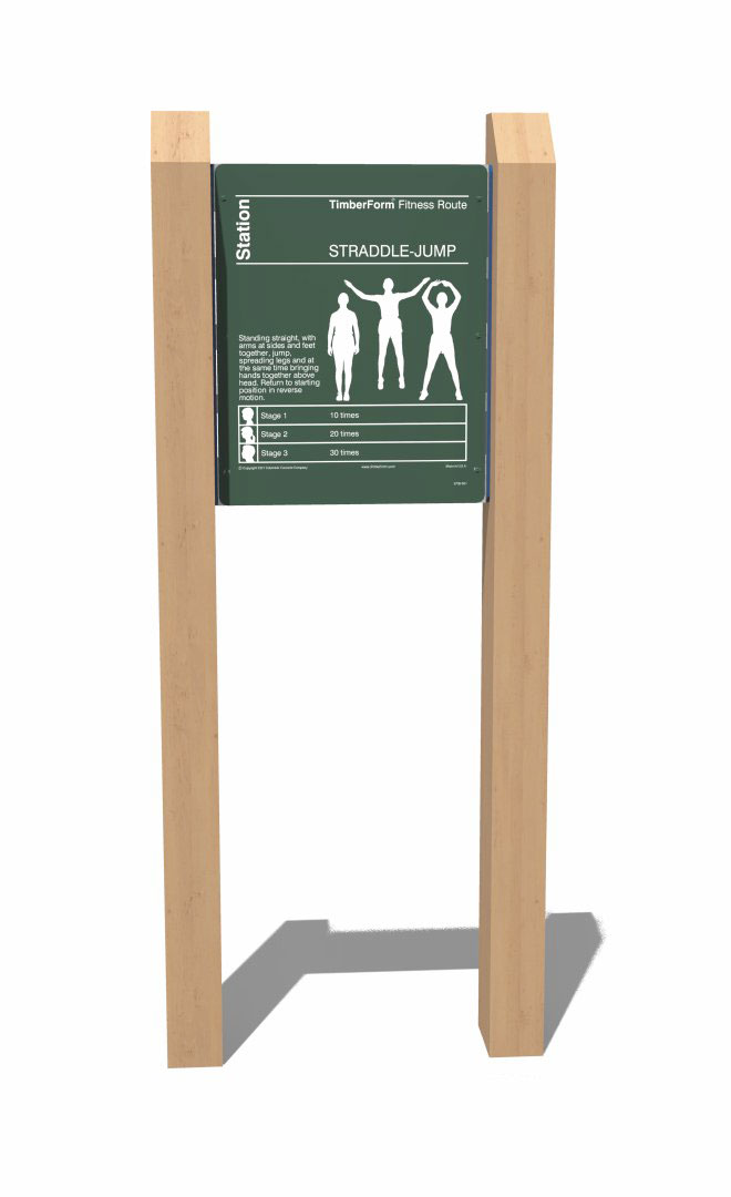 TimberForm 5105-03, Straddle-Jump Standard Features: Sign and frame only, no apparatus required Timber sign frame is smoothly dressed free-of-heart-center Coastal Douglas fir All wood components pressure preservatively treated with a water repellant formulation All posts are Max-Treat incised and kerfed to maximize wood preservative preservation at the critical ground line Instructional sign is durable porcelain enamel coated steel Options: Station sequence and sign numbering White graphics on Blue or Green porcelain enamel coated steel panel Choose from ten standard powder-coating colors for metal components Available separately or as part of a set (5100-03-FR) consisting of 18 Stations, each with its own instruction sign, one route introduction sign, plus five posts with directional arrows Downloads: View: TimberForm 5106-03, Hop-Over Standard Features: Timber posts and sign frame are smoothly dressed free-of-heart-center Coastal Douglas fir All wood components pressure preservatively treated with a water repellant formulation All posts are Max-Treat incised and kerfed to maximize wood preservative preservation at the critical ground line All rails are powder-coated schedule 40 steel pipe Instructional sign is durable porcelain enamel coated steel Options: Station sequence and sign numbering White graphics on Blue or Green porcelain enamel coated steel panel Choose from ten standard powder-coating colors for metal components Available separately or as part of a set (5100-03-FR) consisting 18 Stations, each with its own instruction sign, one route introduction sign, plus five posts with directional arrows Downloads: View: TimberForm 5107-03, Leg-Flex Standard Features: Timber posts and sign frame are smoothly dressed free-of-heart-center Coastal Douglas fir All wood components pressure preservatively treated with a water repellant formulation All posts are Max-Treat incised and kerfed to maximize wood preservative preservation at the critical ground line All rails are powder-coated schedule 40 steel pipe Instructional sign is durable porcelain enamel coated steel Options: Station sequence and sign numbering White graphics on Blue or Green porcelain enamel coated steel panel Choose from ten standard powder-coating colors for metal components Available separately or as part of a set (5100-03-FR) consisting 18 Stations, each with its own instruction sign, one route introduction sign, plus five posts with directional arrows Downloads: View: TimberForm 5108-03, Arm-Stretch Standard Features: Timber posts and sign frame are smoothly dressed free-of-heart-center Coastal Douglas fir All wood components pressure preservatively treated with a water repellant formulation All posts are Max-Treat incised and kerfed to maximize wood preservative preservation at the critical ground line All rails are powder-coated schedule 40 steel pipe Instructional sign is durable porcelain enamel coated steel Options: Station sequence and sign numbering White graphics on Blue or Green porcelain enamel coated steel panel Choose from ten standard powder-coating colors for metal components Available separately or as part of a set (5100-03-FR) consisting 18 Stations, each with its own instruction sign, one route introduction sign, plus five posts with directional arrows Downloads: View: |