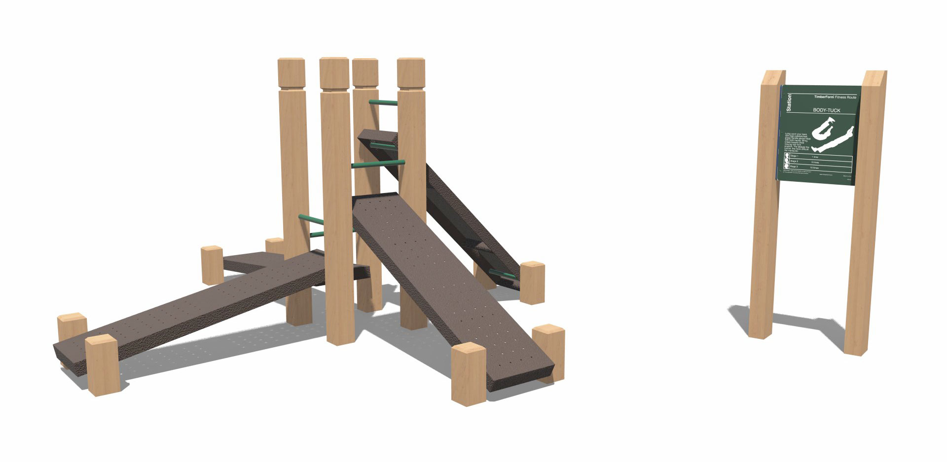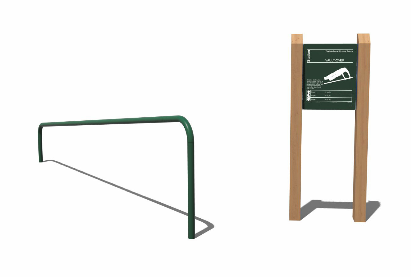 TimberForm 5109-03, Body-Tuck, with SofDek Bench Tops Standard Features: Bench tops are reinforced perforated steel plate coated with SofDek UV stabilized thermoplastic Timber posts and sign frame are smoothly dressed free-of-heart-center Coastal Douglas fir All wood components pressure preservatively treated with a water repellant formulation All posts are Max-Treat incised and kerfed to maximize wood preservative preservation at the critical ground line All rails are powder-coated schedule 40 steel pipe Instructional sign is durable porcelain enamel coated steel Options: Station sequence and sign numbering White graphics on Blue or Green porcelain enamel coated steel panel Choose from ten standard powder-coating colors for metal components Available separately or as part of a set (5100-03-FR) consisting 18 Stations, each with its own instruction sign, one route introduction sign, plus five posts with directional arrows Downloads: View: TimberForm 5110-03, Body-Pull Standard Features: Timber posts and sign frame are smoothly dressed free-of-heart-center Coastal Douglas fir All wood components pressure preservatively treated with a water repellant formulation All posts are Max-Treat incised and kerfed to maximize wood preservative preservation at the critical ground line All rails are powder-coated schedule 40 steel pipe Instructional sign is durable porcelain enamel coated steel Options: Station sequence and sign numbering White graphics on Blue or Green porcelain enamel coated steel panel Choose from ten standard powder-coating colors for metal components Available separately or as part of a set (5100-03-FR) consisting 18 Stations, each with its own instruction sign, one route introduction sign, plus five posts with directional arrows Downloads: View: TimberForm 5111-03, Leg-Kick Standard Features: Sign and frame only, no apparatus required Timber sign frame is smoothly dressed free-of-heart-center Coastal Douglas fir All wood components pressure preservatively treated with a water repellant formulation All posts are Max-Treat incised and kerfed to maximize wood preservative preservation at the critical ground line Instructional sign is durable porcelain enamel coated steel Options: Station sequence and sign numbering White graphics on Blue or Green porcelain enamel coated steel panel Choose from ten standard powder-coating colors for metal components Available separately or as part of a set (5100-03-FR) consisting of 18 Stations, each with its own instruction sign, one route introduction sign, plus five posts with directional arrows Downloads: View: TimberForm 5112-03, Vault-Over Standard Features: Timber sign frame is smoothly dressed free-of-heart-center Coastal Douglas fir All wood components pressure preservatively treated with a water repellant formulation All posts are Max-Treat incised and kerfed to maximize wood preservative preservation at the critical ground line Rail is powder-coated schedule 40 steel pipe Instructional sign is durable porcelain enamel coated steel Options: Station sequence and sign numbering White graphics on Blue or Green porcelain enamel coated steel panel Choose from ten standard powder-coating colors for metal components Available separately or as part of a set (5100-03-FR) consisting 18 Stations, each with its own instruction sign, one route introduction sign, plus five posts with directional arrows Downloads: View: |
