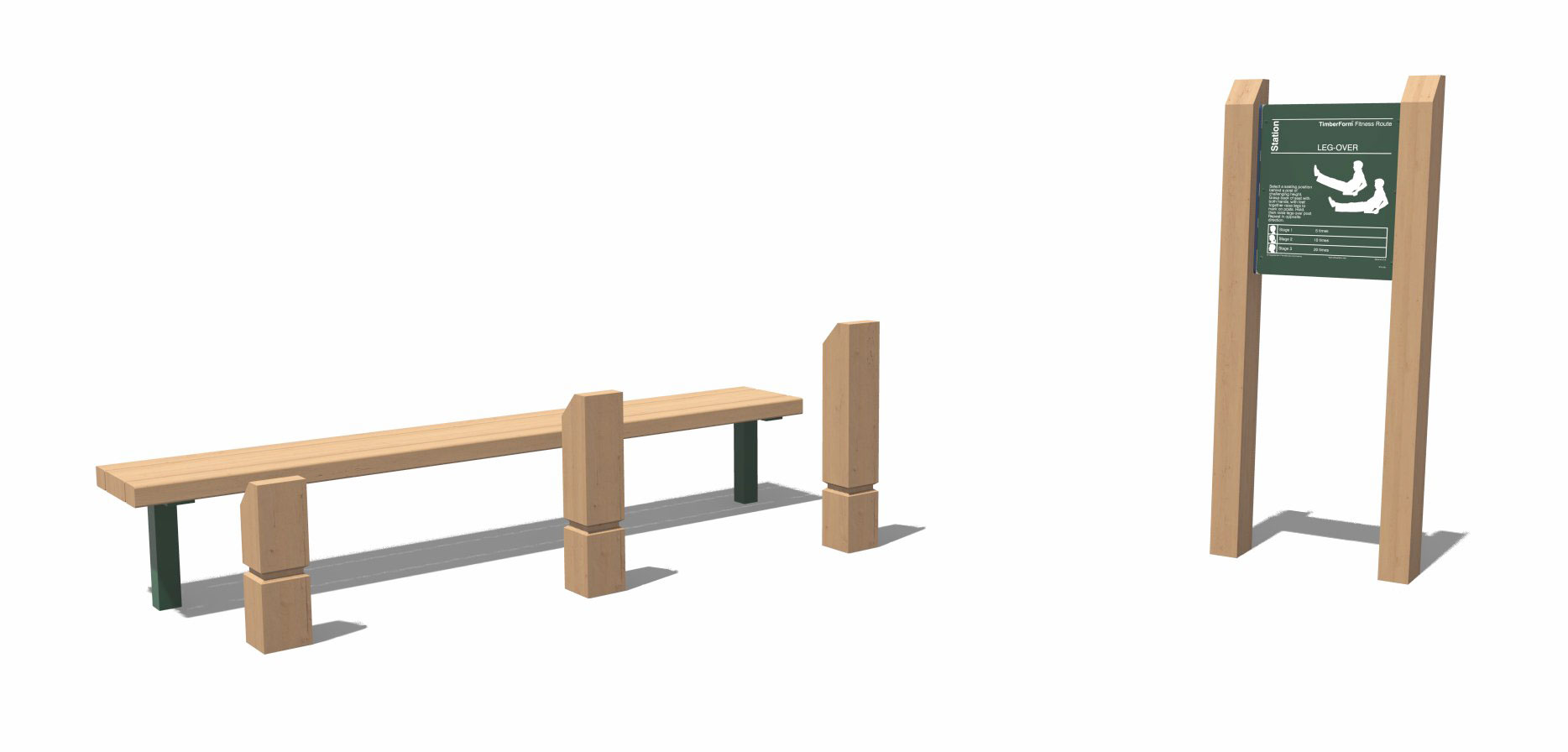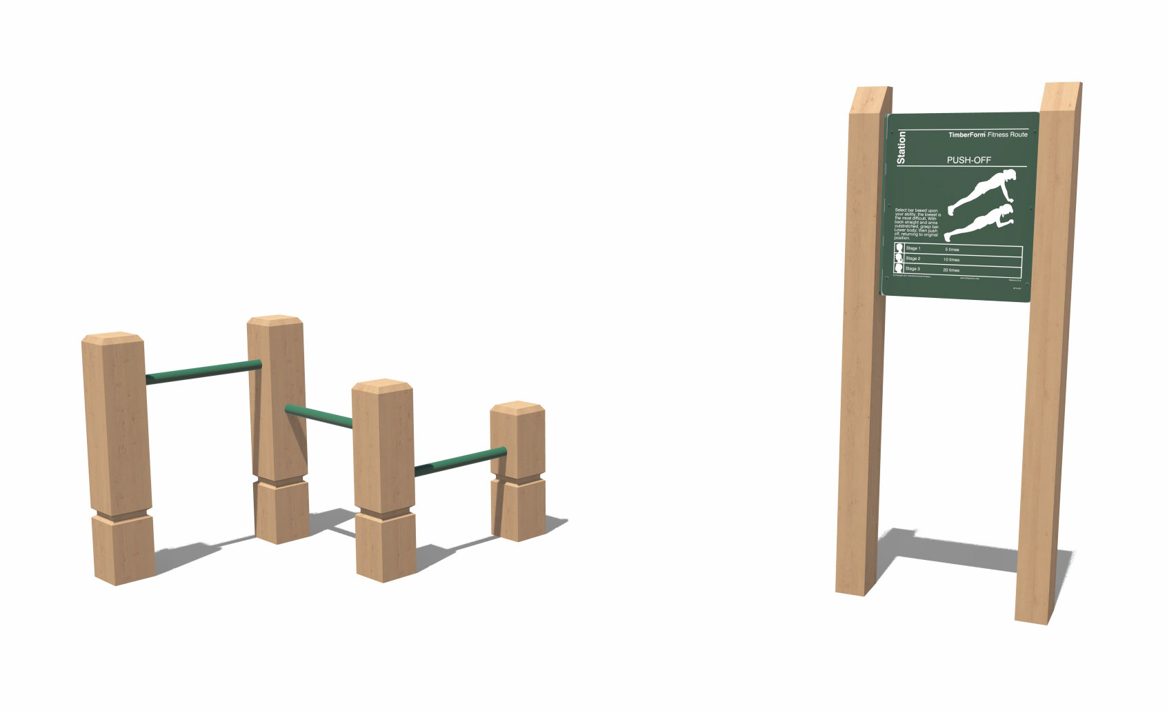 TimberForm 5113-03, Sit-Up, with SofDek Bench Tops Standard Features: Bench tops are reinforced perforated steel plate coated with SofDek UV stabilized thermoplastic Timber sign frame is smoothly dressed free-of-heart-center Coastal Douglas fir All wood components pressure preservatively treated with a water repellant formulation All posts are Max-Treat incised and kerfed to maximize wood preservative preservation at the critical ground line All rails are powder-coated schedule 40 steel pipe Instructional sign is durable porcelain enamel coated steel Options: Station sequence and sign numbering White graphics on Blue or Green porcelain enamel coated steel panel Choose from ten standard powder-coating colors for metal components Available separately or as part of a set (5100-03-FR) consisting 18 Stations, each with its own instruction sign, one route introduction sign, plus five posts with directional arrows Downloads: View: TimberForm 5114-03, Push-Off Standard Features: Timber posts and sign frame are smoothly dressed free-of-heart-center Coastal Douglas fir All wood components pressure preservatively treated with a water repellant formulation All posts are Max-Treat incised and kerfed to maximize wood preservative preservation at the critical ground line All rails are powder-coated schedule 40 steel pipe Instructional sign is durable porcelain enamel coated steel Options: Station sequence and sign numbering White graphics on Blue or Green porcelain enamel coated steel panel Choose from ten standard powder-coating colors for metal components Available separately or as part of a set (5100-03-FR) consisting 18 Stations, each with its own instruction sign, one route introduction sign, plus five posts with directional arrows Downloads: View: TimberForm 5115-03, Leg-Over, with SofDek Bench Tops Standard Features: Bench top is reinforced perforated steel plate coated with SofDek UV stabilized thermoplastic Timber posts and sign frame are smoothly dressed free-of-heart-center Coastal Douglas fir All wood components pressure preservatively treated with a water repellant formulation All posts are Max-Treat incised and kerfed to maximize wood preservative preservation at the critical ground line All rails are powder-coated schedule 40 steel pipe Instructional sign is durable porcelain enamel coated steel Options: Station sequence and sign numbering White graphics on Blue or Green porcelain enamel coated steel panel Choose from ten standard powder-coating colors for metal components Available separately or as part of a set (5100-03-FR) consisting 18 Stations, each with its own instruction sign, one route introduction sign, plus five posts with directional arrows Downloads: View: TimberForm 5116-03, Arm-Walk Standard Features: Timber posts and sign frame are smoothly dressed free-of-heart-center Coastal Douglas fir All wood components pressure preservatively treated with a water repellant formulation All posts are Max-Treat incised and kerfed to maximize wood preservative preservation at the critical ground line All rails are powder-coated schedule 40 steel pipe Instructional sign is durable porcelain enamel coated steel Options: Station sequence and sign numbering White graphics on Blue or Green porcelain enamel coated steel panel Choose from ten standard powder-coating colors for metal components Available separately or as part of a set (5100-03-FR) consisting 18 Stations, each with its own instruction sign, one route introduction sign, plus five posts with directional arrows Downloads: View: |