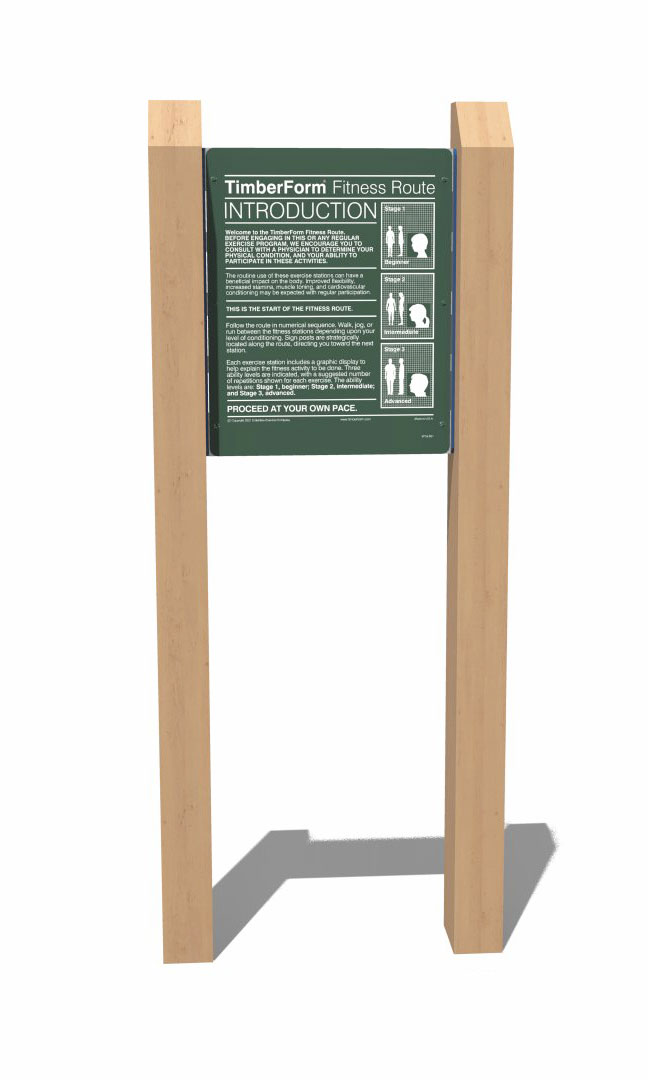 TimberForm 5117-03, Hip-Flex Standard Features: Timber posts and sign frame are smoothly dressed free-of-heart-center Coastal Douglas fir All wood components pressure preservatively treated with a water repellant formulation All posts are Max-Treat incised and kerfed to maximize wood preservative preservation at the critical ground line All rails are powder-coated schedule 40 steel pipe Instructional sign is durable porcelain enamel coated steel Options: Station sequence and sign numbering White graphics on Blue or Green porcelain enamel coated steel panel Choose from ten standard powder-coating colors for metal components Available separately or as part of a set (5100-03-FR) consisting 18 Stations, each with its own instruction sign, one route introduction sign, plus five posts with directional arrows Downloads: View: TimberForm 5118-03, Beam-Walk Standard Features: Timber beam and sign frame are smoothly dressed free-of-heart-center Coastal Douglas fir All wood components pressure preservatively treated with a water repellant formulation All posts are Max-Treat incised and kerfed to maximize wood preservative preservation at the critical ground line All rails are powder-coated schedule 40 steel pipe Instructional sign is durable porcelain enamel coated steel Options: Station sequence and sign numbering White graphics on Blue or Green porcelain enamel coated steel panel Choose from ten standard powder-coating colors for metal components Available separately or as part of a set (5100-03-FR) consisting 18 Stations, each with its own instruction sign, one route introduction sign, plus five posts with directional arrows Downloads: View: TimberForm 5119-03, Introduction Sign Standard Features: Sign and frame only Timber sign frame is smoothly dressed free-of-heart-center Coastal Douglas fir All wood components pressure preservatively treated with a water repellant formulation All posts are Max-Treat incised and kerfed to maximize wood preservative preservation at the critical ground line Instructional sign is durable porcelain enamel coated steel Options: Sign and frame only, no apparatus required Timber sign frame is smoothly dressed free-of-heart-center Coastal Douglas fir All wood components pressure preservatively treated with a water repellant formulation All posts are Max-Treat incised and kerfed to maximize wood preservative preservation at the critical ground line Instructional sign is durable porcelain enamel coated steel Downloads: View: TimberForm 5120-03, Post with Directional Arrow Standard Features: Timber post is smoothly dressed free-of-heart-center Coastal Douglas fir Post is pressure preservatively treated with a water repellant formulation Post is Max-Treat incised and kerfed to maximize wood preservative preservation at the critical ground line Directional sign is durable porcelain enamel coated steel Options: White graphics on Blue or Green porcelain enamel coated steel panel Available separately or as part of a set (5100-03-FR) consisting 18 Stations, each with its own instruction sign, one route introduction sign, plus five posts with directional arrows Downloads: View: |